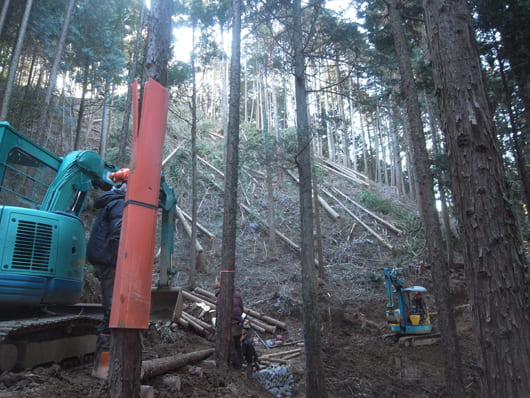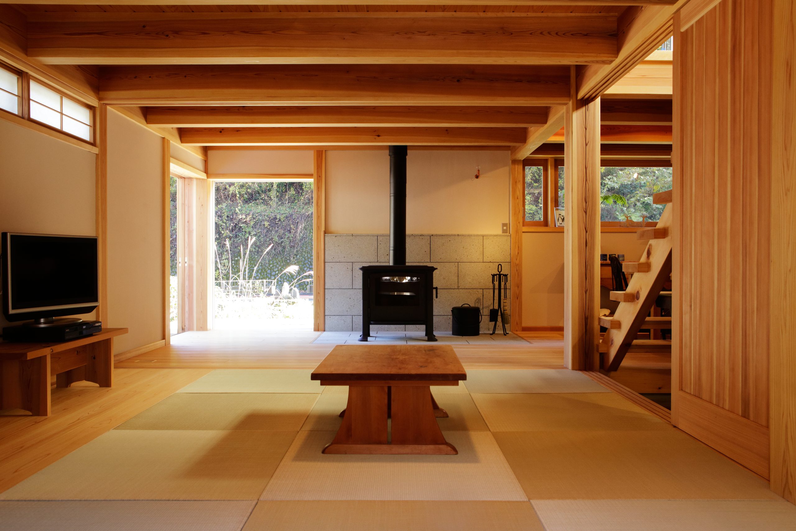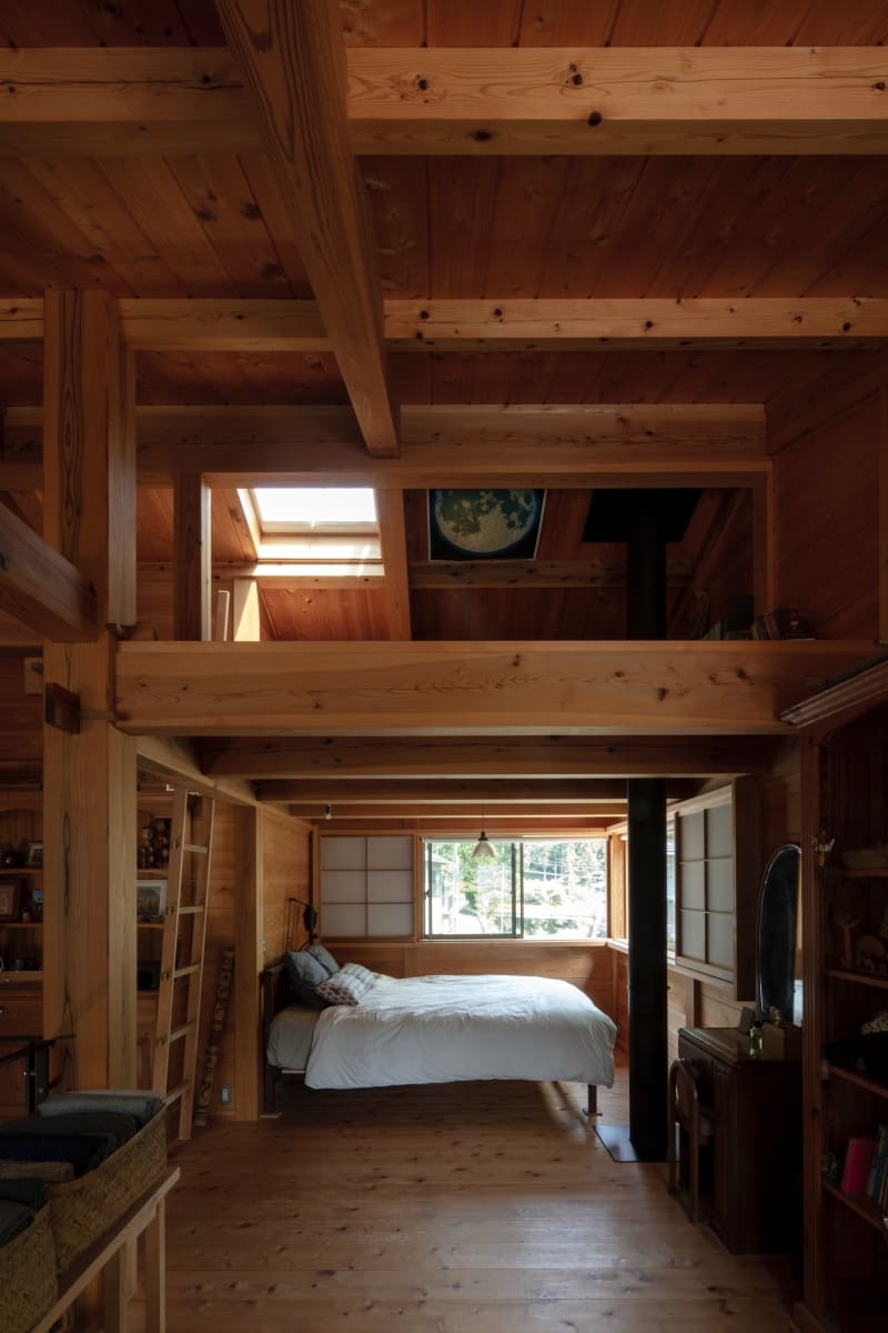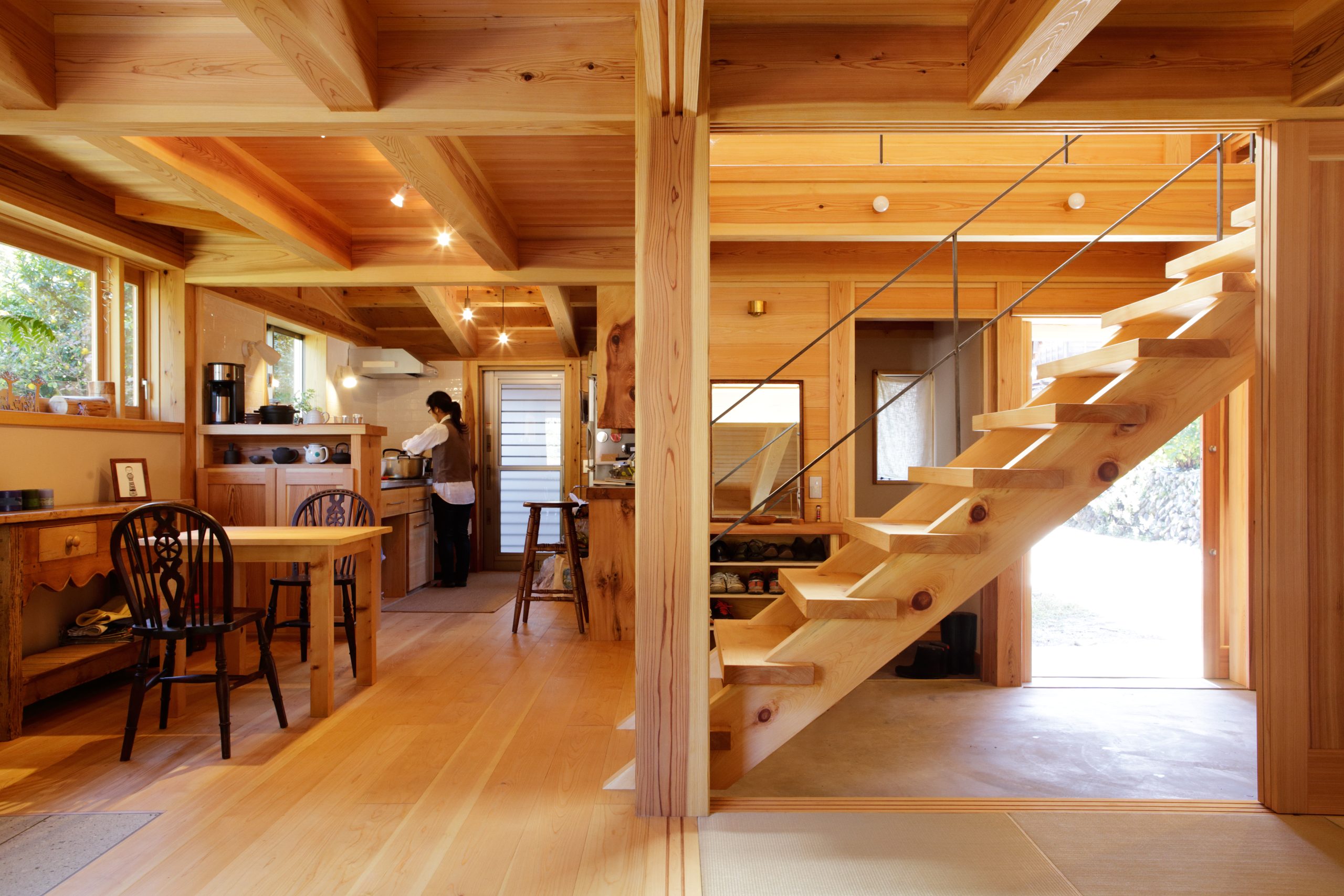 東京都檜原村、秋川沿いの土地にて、林業を営む夫婦の新居。施主が所有する森の杉ヒノキサワラを材料に、製材、天然乾燥、村内の棟梁が手刻みした木組みの家。限られた日照、河川沿いの高湿度、冬の寒さに配慮して温熱及び調湿環境を整えている。