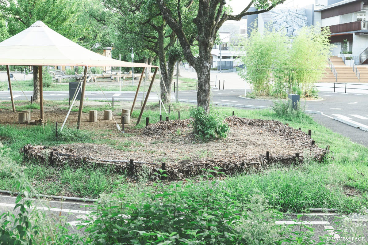京都市初の公園Park-PFI事業として、地域資源の循環をコンセプトに、環境再生視点におけるデザイン監修と環境再生の設計施工を担当。園内の土中環境改善と整備として、既存高木群や桜、楠木の再生、移植や遊具活用による広場、テント空間、御土居における階段動線、構造物の浸透下地などを実施。もぐらクラブと称したクラブ活動を発足、現在も他事業者による市民参加型の運営管理が継続されている。