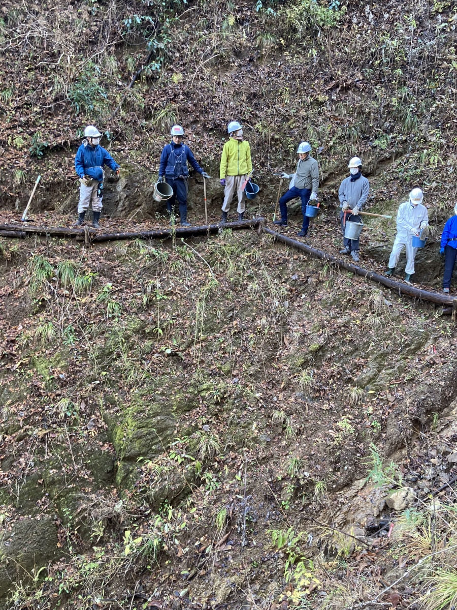 市民参加型の環境再生を取り入れた森づくり実践型講座を開催。森を歩きながらの観察・見立て調査を踏まえたのち、森を育む山道の階段作りや水脈づくりなど、3回に渡り実施した。