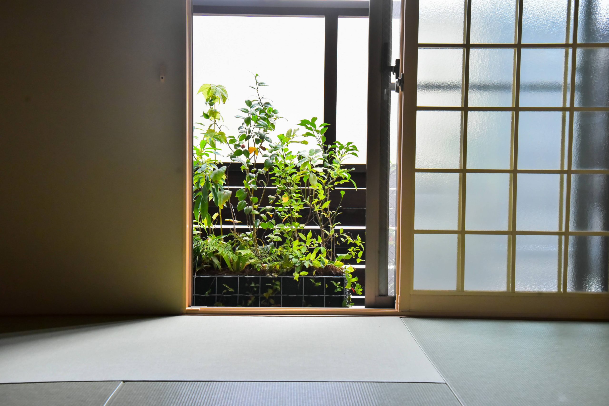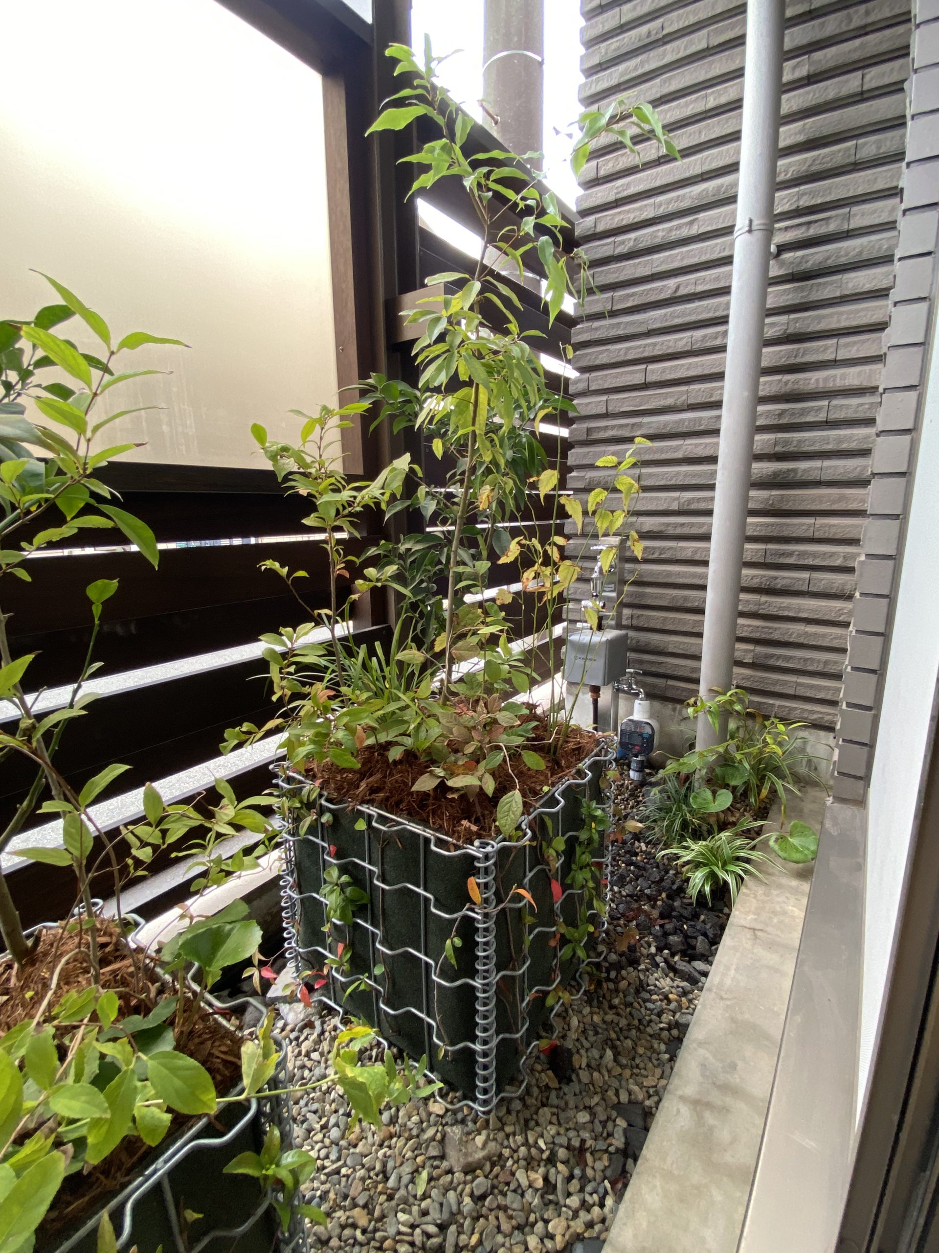 「隣地に囲まれたマンションという環境の中でも、緑を感じながら生活をしたい。」というご相談をいただき、隣地に囲まれた小さな北庭と南側の狭いベランダの環境改善からスタートしました。