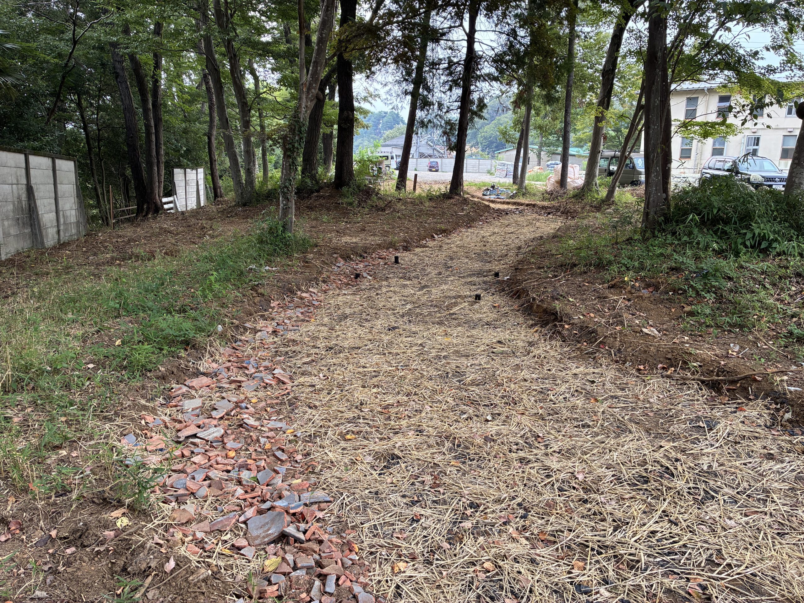 樹木の衰弱や土壌の硬化、水や風の滞留といった敷地全体の課題に対し、水と空気の流れを基盤から整える環境再生を施工。