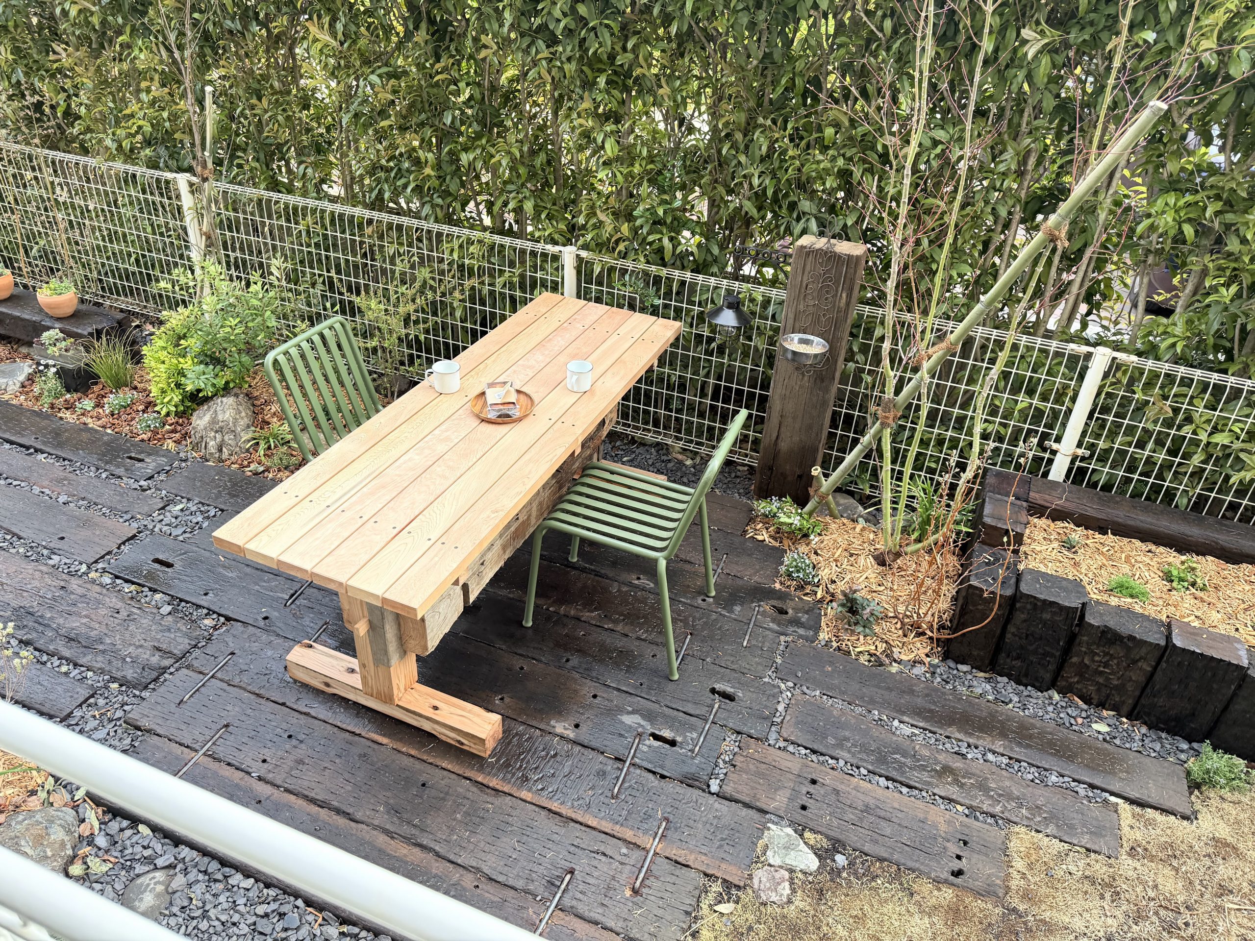 テラスにはテーブルや立水栓を設け、日常のくつろぎや人が集う場として機能する空間としている。