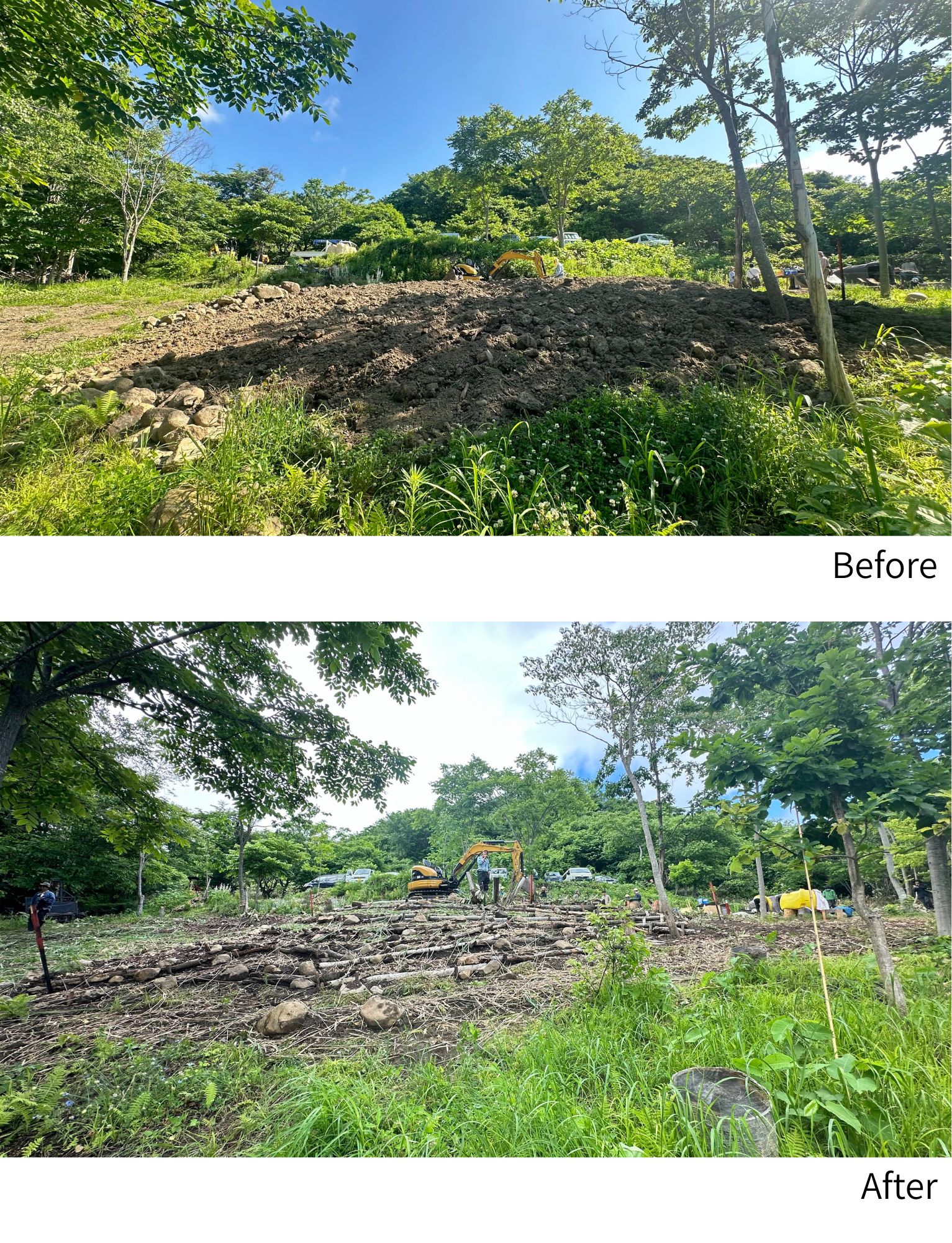 樹木の掘り取り・移植も行い、土地を支える役割を持たせながら、建築に向けた基盤づくりを進めた。
