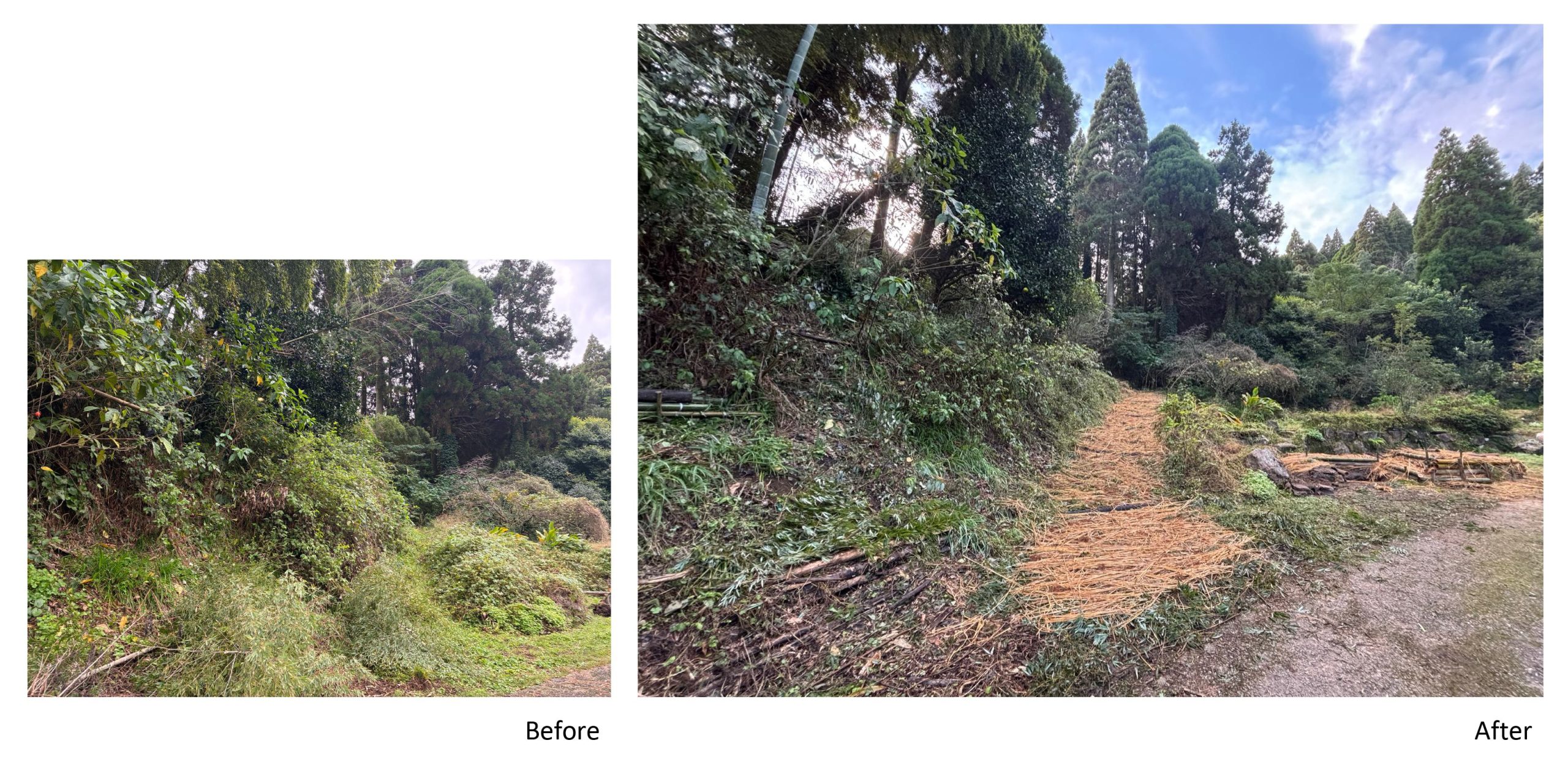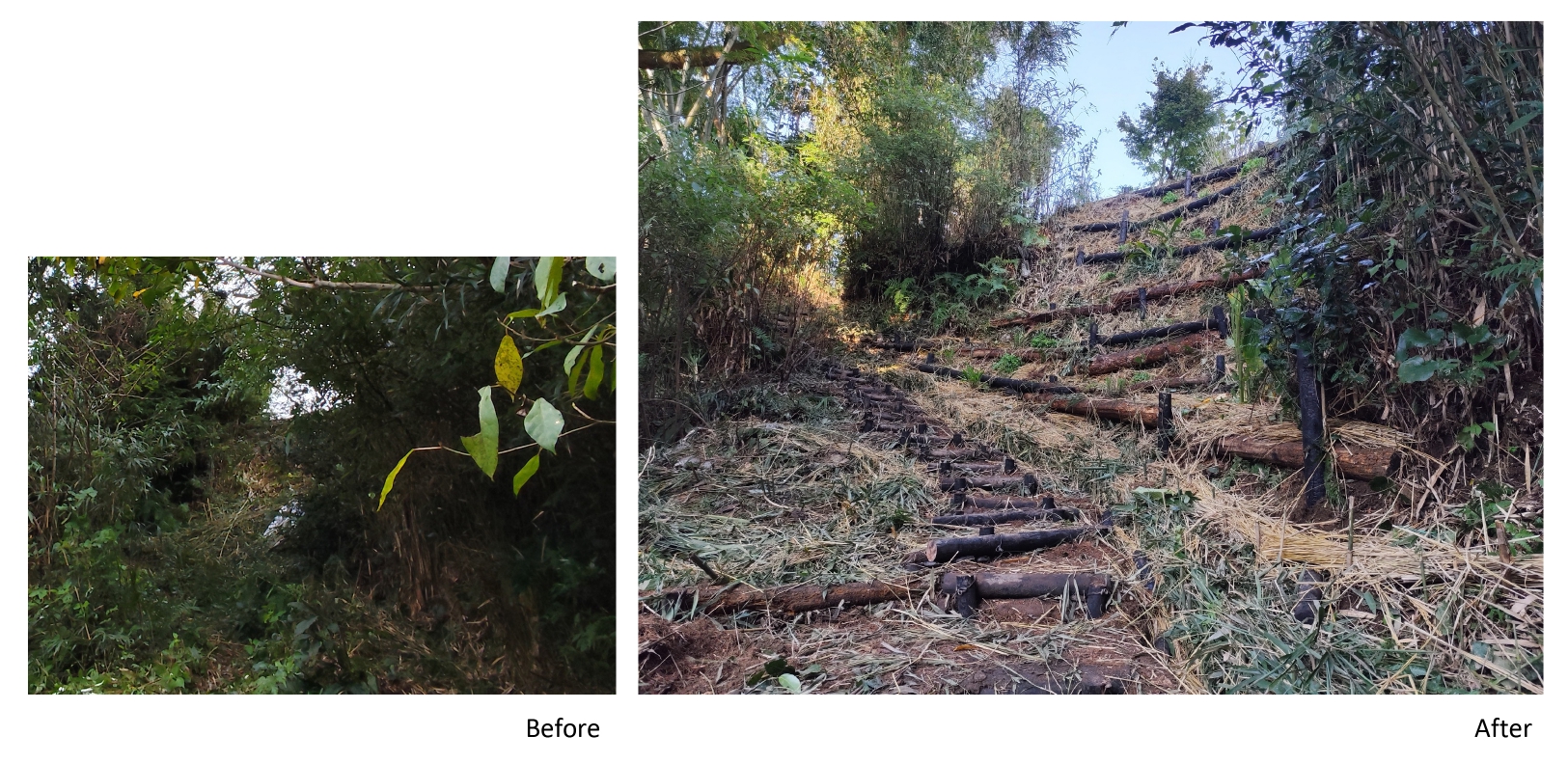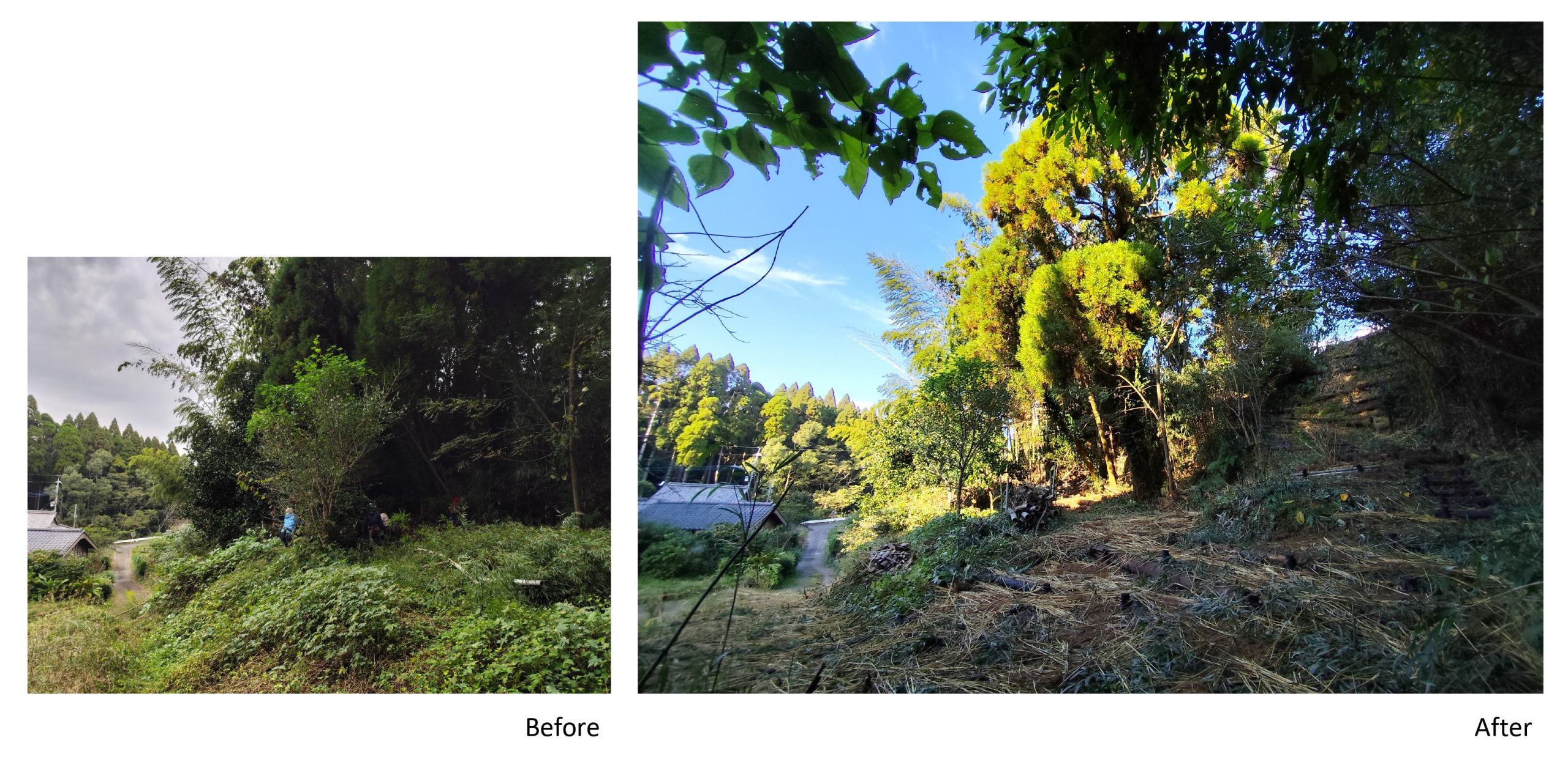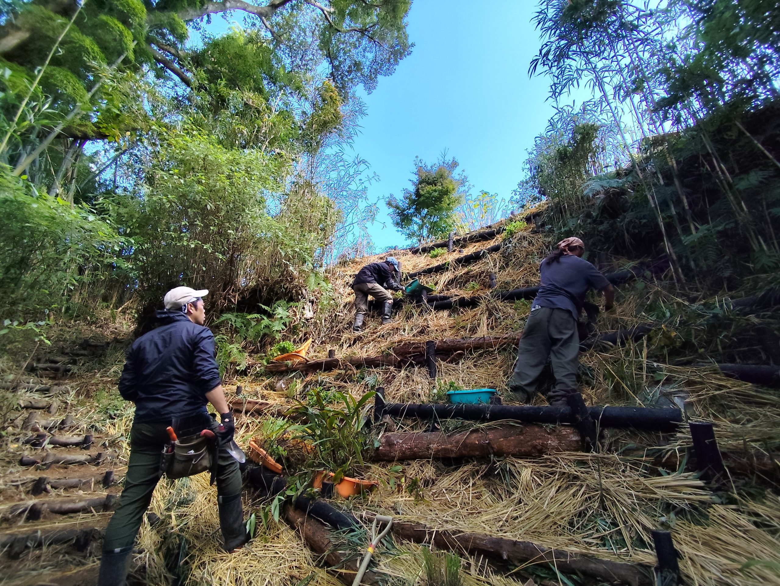 斜面そのものだけでなく、風の通り道や水の巡りを整えることで、周囲の家や畑、集落全体へと環境改善が広がることを目指した。